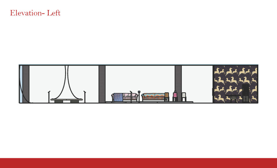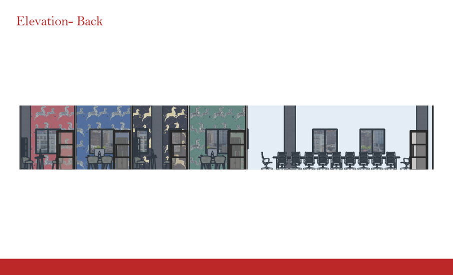 The goal of the House of Scalamandré showroom is to guide the client through a chronological narrative: picking initial fabric and wallpaper swatches, seeing how those fabrics look when applied to individual furniture pieces, and concluding with a full mock living space that showcases the products in a fully realized environment.