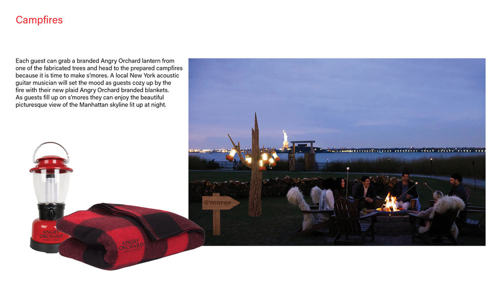 Playing off of the name of Angry Orchard’s limited edition fall Fireside Mix Variety Pack, this event will invite selected influencers and media to attend ‘Camp Orchard.’ This experiential adult summer camp will be a whimsical and nostalgic way to bring the flavors of the variety pack to life in a unique and playful way. The unforgettable experience will be an extension of the brand’s playful nature that invited guests will want to post about on social media, gaining brand visibility and traction.